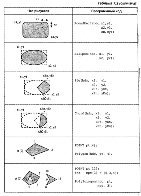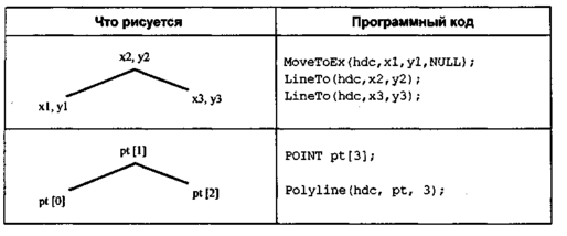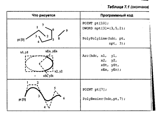 Примеры для линий— графических примитивов API Windows— даны в табл. 7.1.