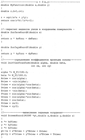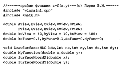 Рассмотрим пример программы для рисования поверхности, заданной в виде! функции z =f(х, у), например: 1