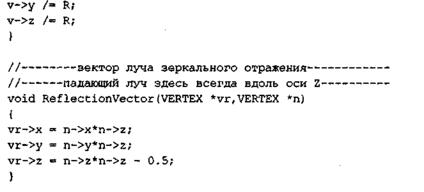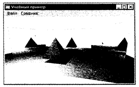 Изображение шара приведено на рис. 7.9. Запустите программу, выберите пункт меню "Графика" и вы увидите шар, который, как кажется, вращается вокруг оси. Здесь вращается не шар, а система координат. Для этого использовано соответствующее преобразование координат при создании проек* ции — повороты координат. Углы наклона камеры в