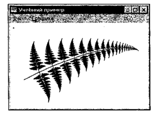 В следующем примере программы мы используем линии для рисования фрактала. Этот фрактал немного напоминает папоротник (рис. 7.10). Используем перья различных оттенков зеленого цвета для имитации ствола, ветвей и листвы.