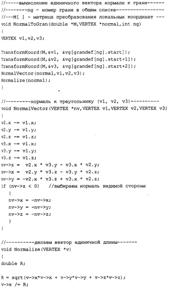 Для рисования с удалением невидимых точек поверхности используем метод ] сортировки граней по глубине, а точнее, будем прямо рисовать грани от самых дальних к самым близким. Каждую грань можно рисовать четырехугольником-полигоном (рис. 7.11.).