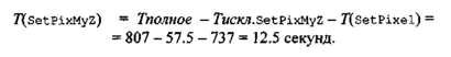 торые остались, выполняются так же, как и до исключения. Временно ш ключим setPixMyz. Результат— 57.5. То есть, из 807 секунд почти все врем расходуется на запись пикселов.