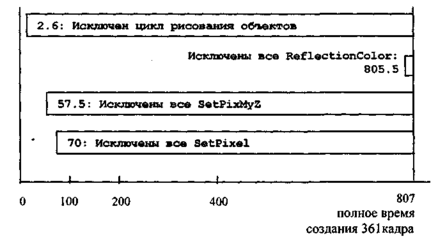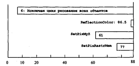 Составная часть функции SetPixMyz — вызовы функции SetPixel. Времен^ исключим ее. Результат— 70 секунд. Результаты временных исключен^ отобразим следующей диаграммой (рис. 8.3).