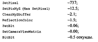 Этот перечень неполон, можно анализировать еще некоторые функции, однако уже ясно, что основная причина низкой скорости — это использование функции setpixei. Ее мы никак не можем изменить, ибо это функция API Windows. Но можно попробовать обойтись без нее.