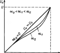 Зависимость UH от /3 для различных а приведена на рис. 4.10. Если а столь мало, что а/3 < 1 (режим холостого хода), то UH изменяется пропорционально /3. При увеличении коэффициента нагрузки а зависимость становится нелинейной, причем нелинейность возрастает с увеличением а.