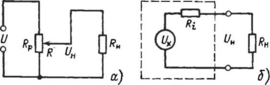 Для анализа цепи, в которой сопротивление нагрузки Rw соизмеримо с номинальным сопротивлением преобразователя Лр, используем теорему об активном двухполюснике. Для определения тока в некотором сопротивлении RH исследуемую цепь можно представить в качестве активного двухполюсника, имеющего внутреннее сопротивление Rj и напряжение холостого хода Ux (рис. 4.9, б). К зажимам двухполюсника подключено сопротивление Rw. Напряжение на нагрузке