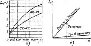 где RT — темновое сопротивление, т. е. сопротивление неосвещенного преобразователя; Rwo — сопротивление при Е = 200 лк. ВАХ фоторе-зисторов линейна (рис. 4.46,6), т. е. их сопротивление не зависит от