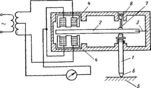 Дальнейшее уменьшение влияния на характер движения детали можно получить, если сделать движущуюся деталь частью преобразователя. Например, если деталь стальная, то ее можно использовать в качестве якоря индуктивного преобразователя. Однако при зтом может быть сильно затруднена градуировка и поверка прибора.