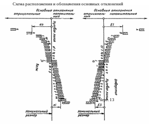 Основные отклонения обозначаются буквами латинского алфавита, прописными для отверстий (A...ZC) и строчными для валов (a...zc) (черт. 13).