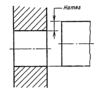 1.1.29. Натяг — разность между размерами вала и отверстия до сборки, если размер вала больше размера отверстия (черт. 4).