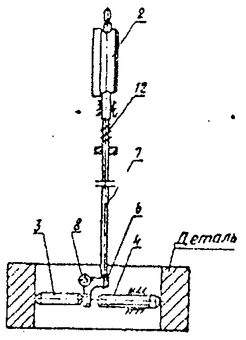 В процессе измерения отверстия (рис. 3.2.) стержень 3 перемещается перпендикулярно оси отверстия, поворачивая рычаг 6 вокруг оси 8 и перемещая на ту же величину шток 7 и измерительный наконечник 2.