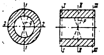 Измерения проводим в трех сечениях (I–I, II–II, III–III) и двух взаимно перпендикулярных направлениях (1–1 и 2–2).