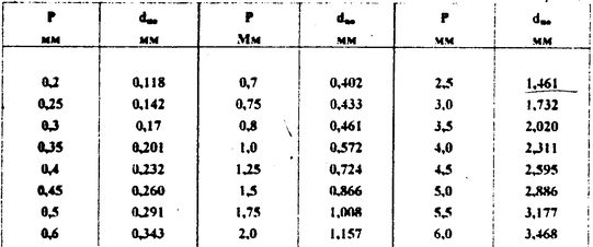 Рекомендуемые диаметры проволочек для метрической резьбы в зависимости от шага (СТ СЭВ 242–75) указаны в табл. 4.1.