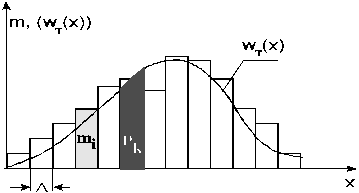 В соответствии с критерием, область в пределах которой лежат значения выборки случайных величин xi, i=1,2,......,n, разбивается на m интервалов (не обязательно равных). Положим для простоты, что интервалы одинаковы, тогда длина интервала будет равна