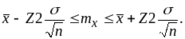 При определенных значениях Z2, Z1 выражение для доверительного интервала, внутри которого с вероятностью РДОВ могут лежать значения математического ожидания, будет иметь вид