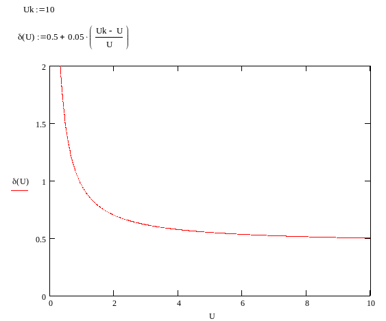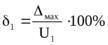 1. График зависимости относительной погрешности от величины измеренного значения напряжения U на данном пределе измерений поверяемого вольтметра.