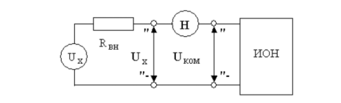 При использовании компенсатора (потенциометра) реализуется разновидность метода сравнения, известная как нулевой метод измерений. При использовании этого метода измеряемая величина одновременно или периодически сравнивается с мерой, и результирующий эффект воздействия этих величин на устройство сравнения доводится до нуля.
