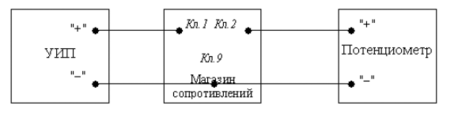 При выполнении измерений с помощью потенциометра измеряемая величина, сравнивается с мерой, в качестве которой выступает образцовое компенсирующее напряжение, создаваемое регулируемым источником образцового напряжения. В электрической схеме этот источник включается встречно с источником измеряемого напряжения.