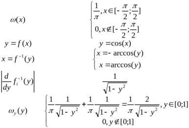 немонотонна, поэтому плотность вероятности может быть найдена по формуле