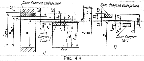 Посадки с зазором характеризуются предельными зазорами — наибольшим и наименьшим (см. рис. 4.4).