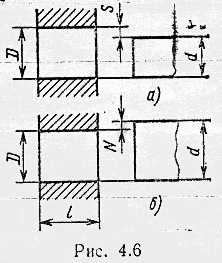 Зазором S называют разность размеров отверстия и вала, если размер отверстия больше вала, т. е. S = D – d (рис. 4.6, а).
