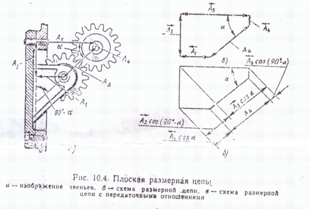 Пример такой цепи показан на рис. 10.4, а. Размерная схема этой цепи дана на рис. 10.4, б, в.