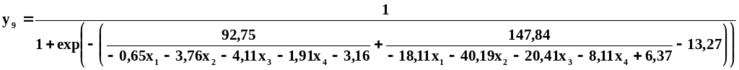 B=-2,6x1-9,45x2+12,08x3-19,21x4+7,19x5-1,4x6-1,33x7+1,4x8-26,8x9+5,57.