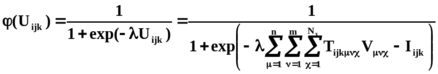 V – выходное напряжение нейрона, Vijk = φ(Uijk);