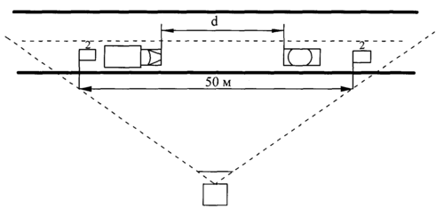 На исследуемых участках дорог, хорошо заметными вешками ограничивалась зона в 50 метров. Видеокамеру устанавливали таким образом, чтобы в кадр попадала вся 50-метровая зона. Схема проведения видеосъёмки представлена на рисунке 2.1.