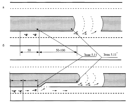 3. Рекомендации по улучшению организации движения на участках разворотных зон. Исследование режимов движения на участке разворотных зон на автомобильных дорогах районов лесозаготовок позволили предложить ряд рекомендаций по улучшению организации движения на участках разворотных зон. Схема организации движения, показанная на рис. 5.2, предполагает создание очереди автомобилей не более 10-15 штук. В этом случае остальные автомобили, следующие на разворот, едут на другую разворотную зону, расположенную по пути следования не ближе 1 км.