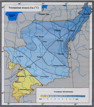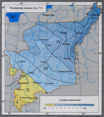 Рис. 7.1 – Карта зонального разделения территории на примере Республики Коми с учетом дорожной обстановки в различное время года