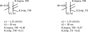 Расчет отражательной и пропускательной способностей многослойных структур, содержащих произвольное число диэлектрических слоев, основан на методе Абелеса [26].