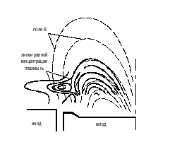 ni и потенциал плазмы пл определялись с помощью электрического зонда, установленных в разрядном промежутке. При перемещении зонда внутри разряда в фиксированных точках снимались вольтамперные характеристики зондов. Затем по результатам обработки характеристик строились графики распределения параметров плазмы как в прикатодной области, так и вне неё. При обработке зондовых характеристик наиболее существенным отклонением от традиционной зондовой методики был учет влияния магнитного поля.