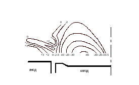Рис.6. Распределение потенциала плазмы пл в разрядном промежутке магнетронной распылительной системы МРС №1. Потенциал плазмы дан относительно анода
