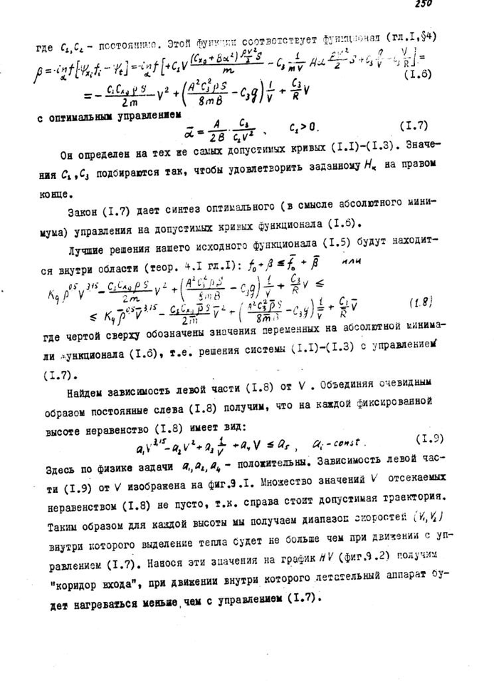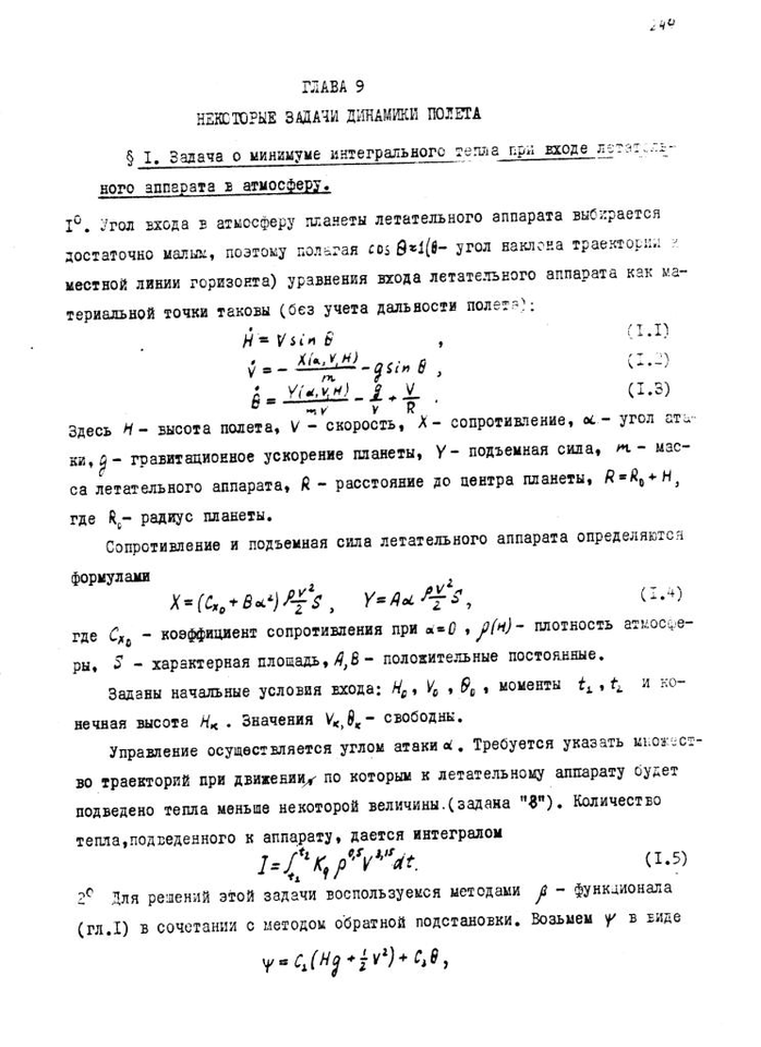§1. Задача о мимуме интегрального тепла при входе летательного аппарата в атмосферу 249