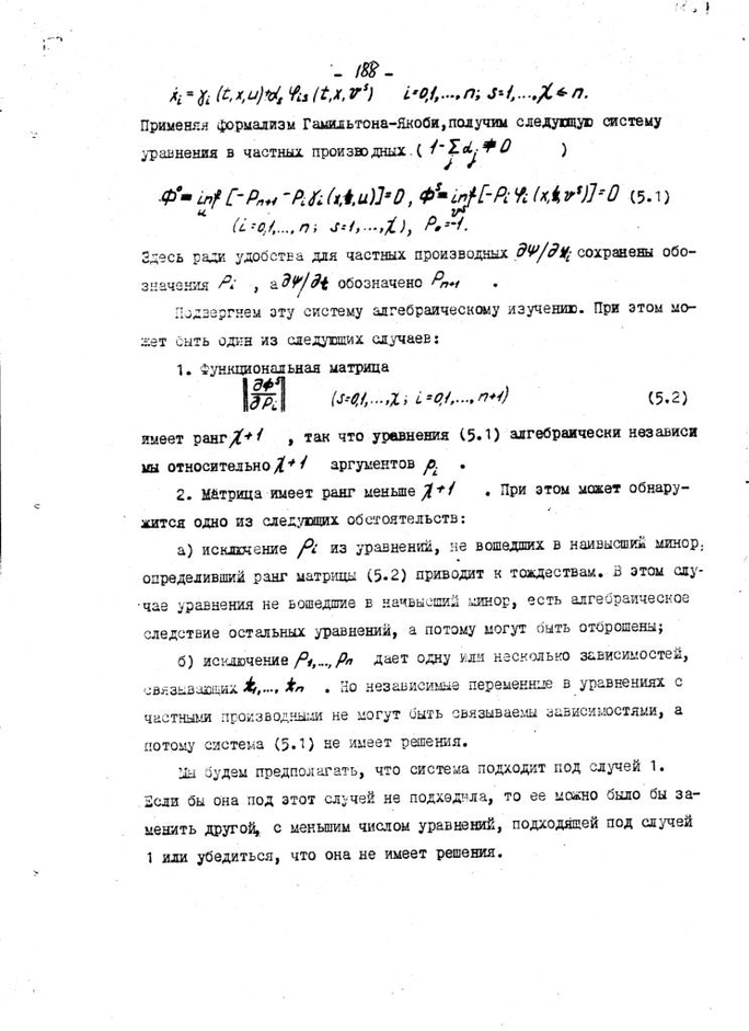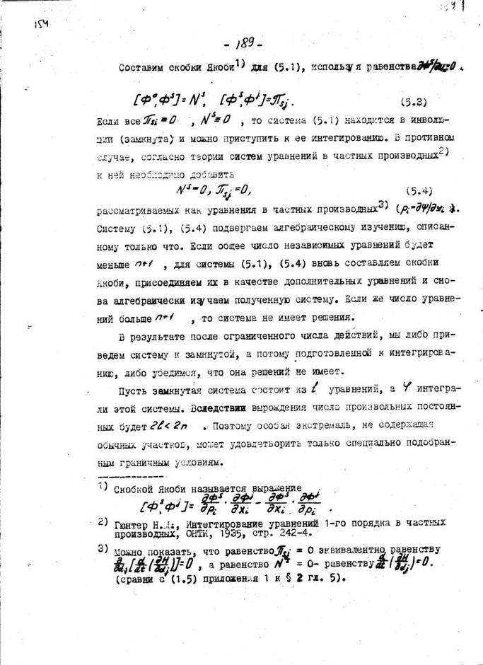 §5. Замечание об изучении особых экстремалей при помощи уравнений в частных