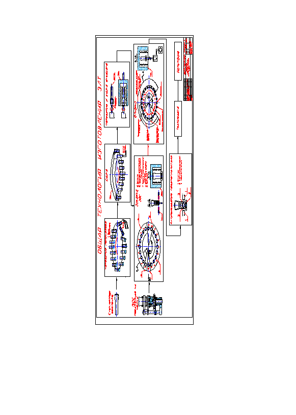 Дается общая технологическая схема изготовления изделия с эскизами и, по возможности, с режимами основных операций. Может приводиться только часть технологического процесса, включающая заданную операцию и проектируемое оборудование (технология сборки корпуса прибора, завершающие операции техпроцесса и др.).