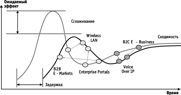 Для разных региональных рынков кривая проявляется по-разному для одних и тех же технологий. В России и ажиотаж, и спад меньше, чем глобально (где впервые внедрилось).