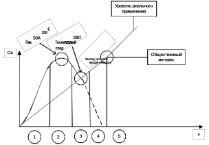 Кривая ажиотажа (предложенная 15 лет назад) описывает процесс появления и стабилизации на рынке новых технологий. На кривой несколько этапов – ожидание социума, который хочет употребить эту технологию себе на пользу: