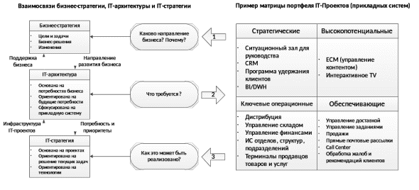 Взаимосвязи бизнес-стратегии, IT-архитектуры и IT-стратегии. Матрица портфеля IT-проектов