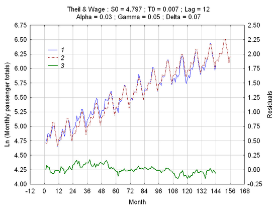 1 – логарифм НВР; 2 - модель Тейла – Вейджа; 3 - остаток