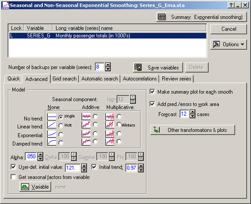 Рисунок 4.2 – Инструментальная панель экспоненциального сглаживания ВР