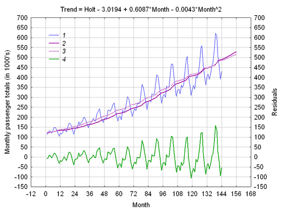 1 – НВР; 2, 3, 4 - модели Хольта, Тейла – Вейджа, Уинтерса