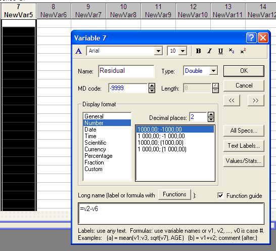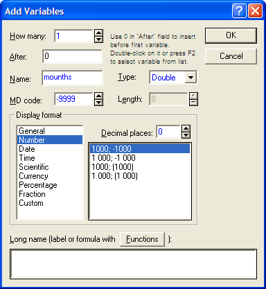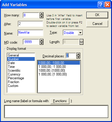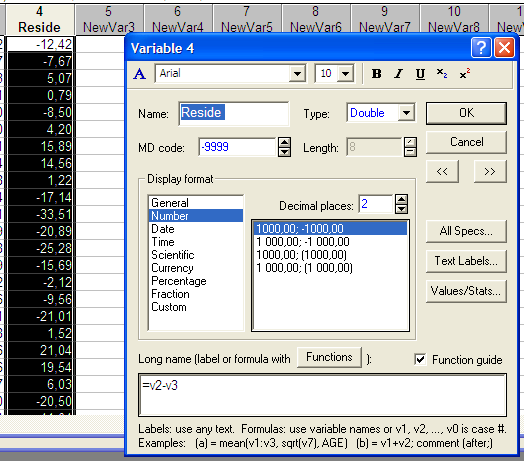 Имеется возможность производить категоризацию по числовым (непрерывным) переменным, например, можно потребовать, чтобы значения переменной были разбиты на заданное число интервалов; с помощью инструмента перекодировки можно в реальном времени задать специальный способ перекодировки переменной (возможна категоризация практически любой сложности, заданная через соотношения между любыми переменными файла данных).