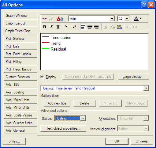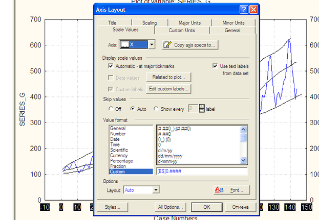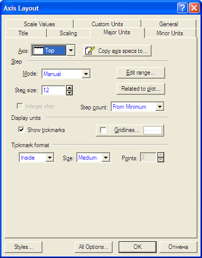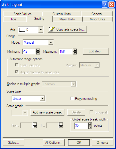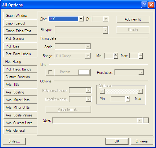 Все параметры собраны в интегрированной панели. Нас интересует подгонка графика.