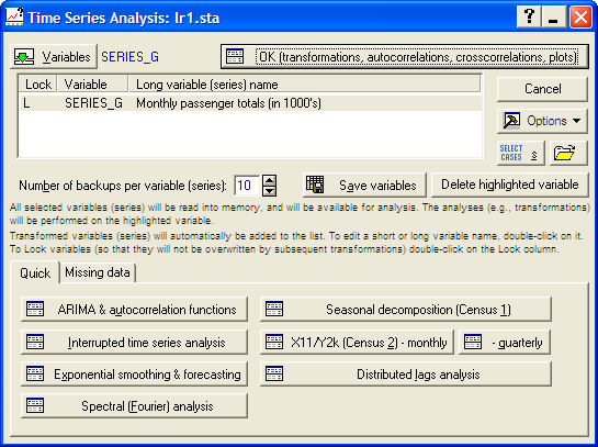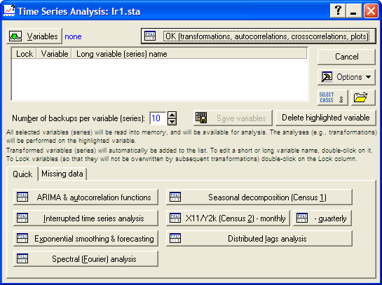 Variables – столбцы таблицы, уникальные временные ряды. Сколько столбиков, столько рядов.