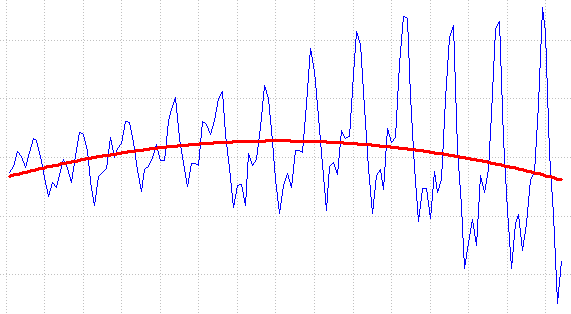 Строим ещё. Видим, что торчит остаточный тренд. Нарисуем ему полигоном.
