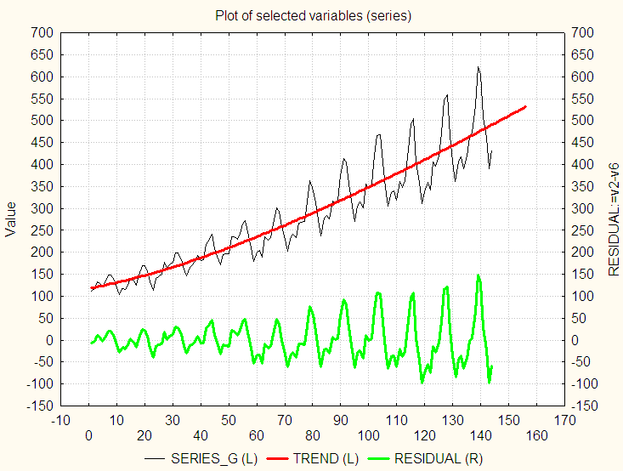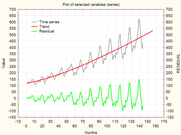 Теперь непараметрическая модель тренда. Применяем простую скользящую среднюю.