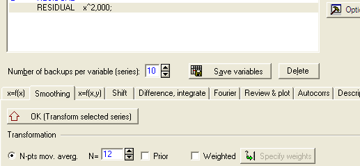 Поставив тут флажок Prior мы получим смещённую оценку, ассоциировав значения скользящей средней с правым интервалом сглаживания (что в общем то нам не надо).