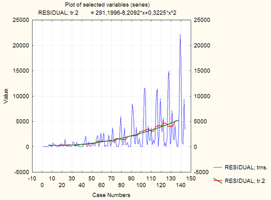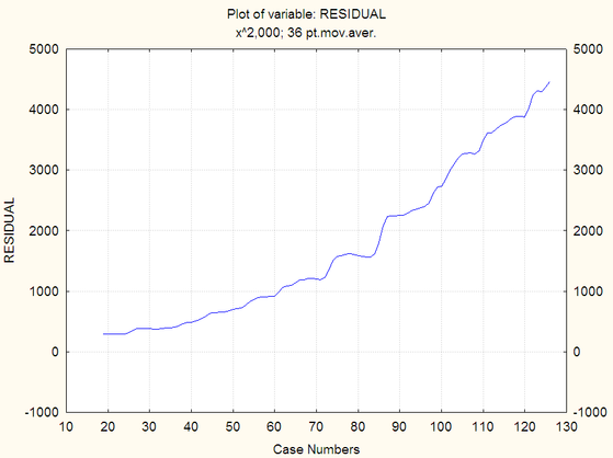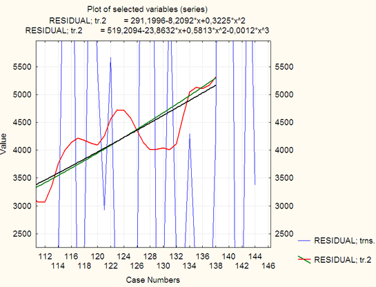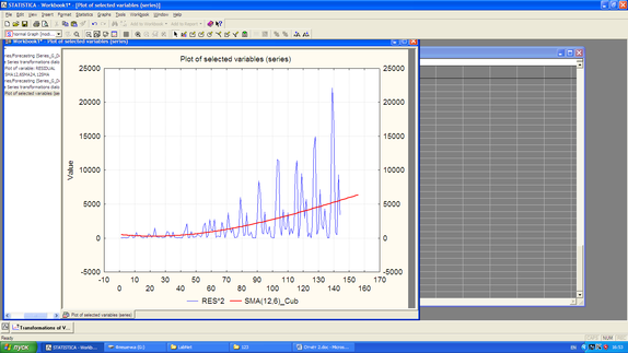 Теперь строим квадрат остатка и кубическую аппроксимацию простой скользящей средней на одном графике:
